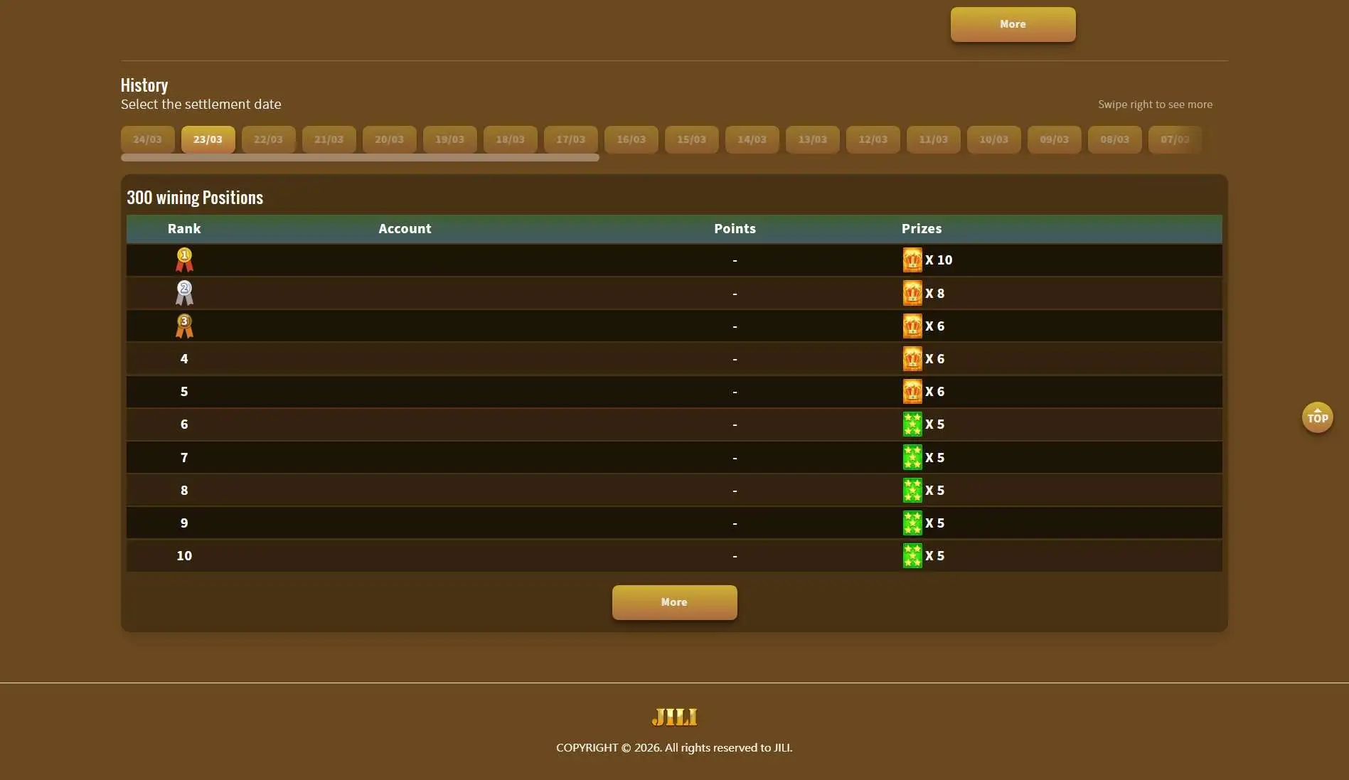 Daily Rewards : Members who play the highest prizes of the day. will be the winner daily champion.